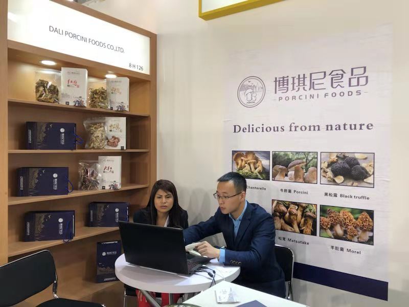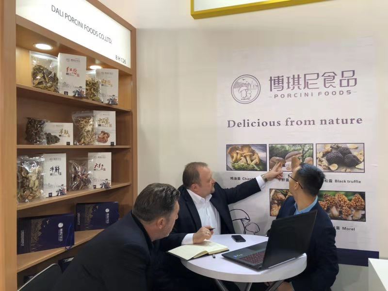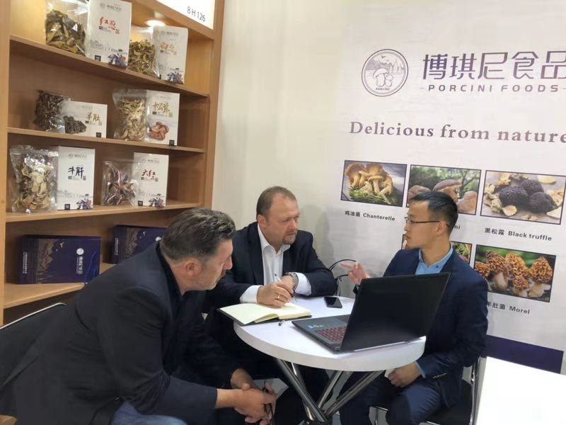 展會第一天,外國客商在博琪尼食品有限公司展位前紛紛駐足,詢問產(chǎn)品相關(guān)信息,了解產(chǎn)品質(zhì)量、規(guī)格等,客商們對博琪尼食品公司優(yōu)質(zhì)的產(chǎn)品質(zhì)量及豐富的出口經(jīng)驗(yàn)給予充分肯定。其中,來自波蘭的客商Stanistaw Tomkowiak及其合伙人與博琪尼總經(jīng)理龔瑞波進(jìn)行洽談之后,就公司主營產(chǎn)品速凍牛肝菌達(dá)成合作意向,初步訂購數(shù)量為兩個柜,并有意簽署長期合作合同。法國客商April對博琪尼出口產(chǎn)品速凍松茸頗為感興趣,表示在法國越來越多的餐廳選擇用優(yōu)質(zhì)松茸及牛肝菌作為輔材加入到菜品當(dāng)中,并受到食客的喜愛,法國對菌類的需求有增無減,希望與博琪尼達(dá)成合作,將中國的優(yōu)質(zhì)菌類帶給法國人民。